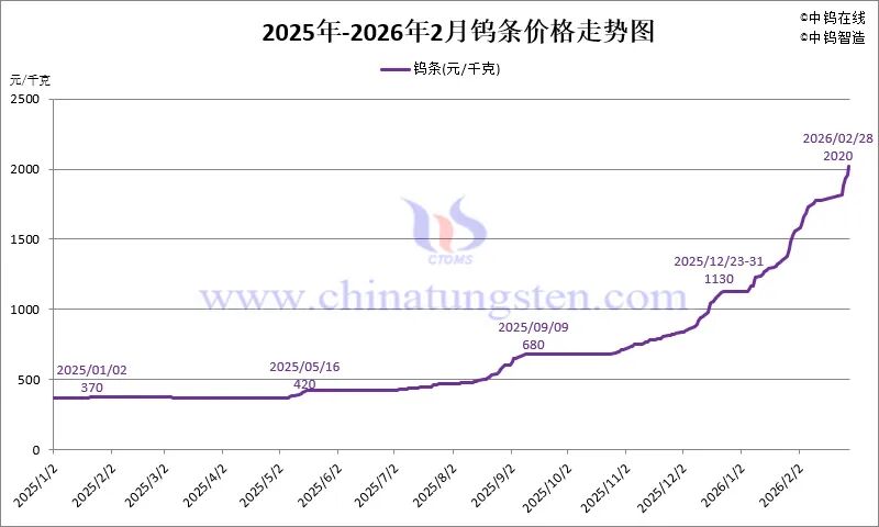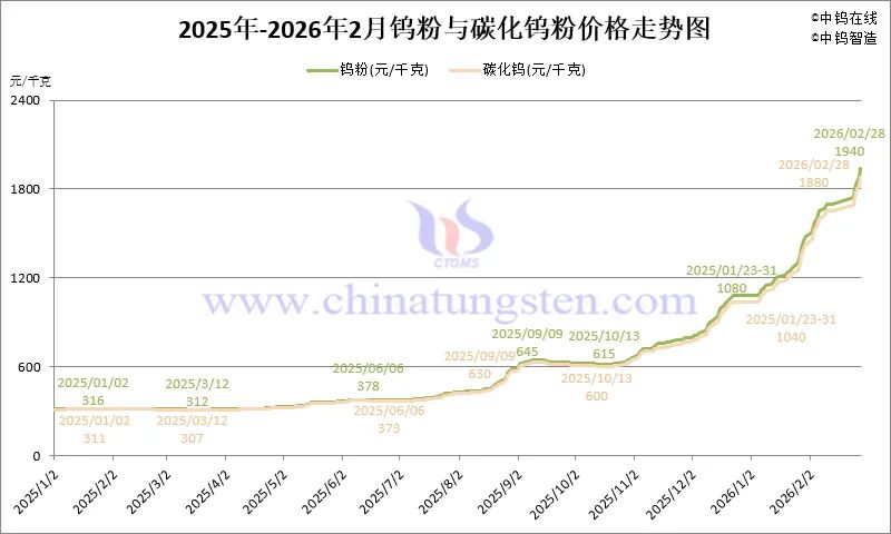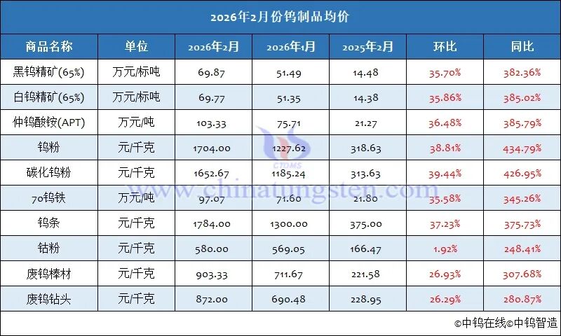 2026年2月份钨制品价格走势全图及评述