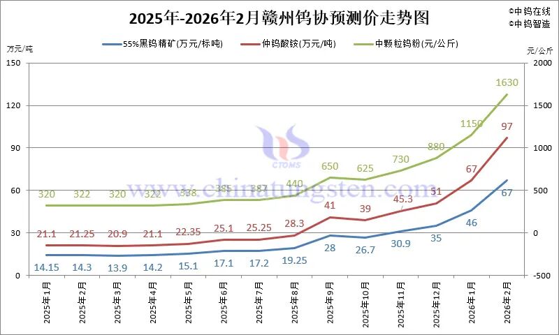 4.1 2026年1-2月份赣州钨协预测均价走势图