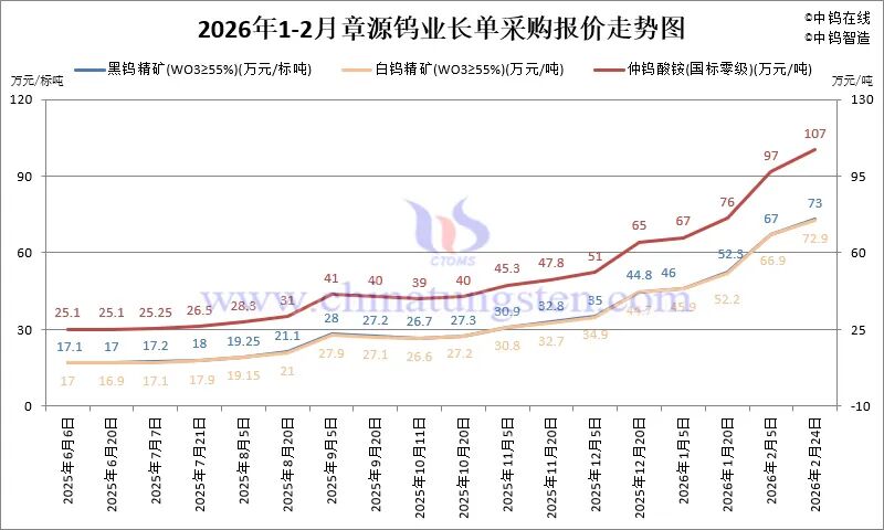 4.2 2026年1-2月份章源钨业长单报价走势图