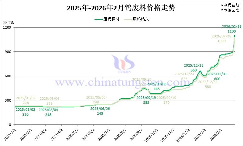 3.6 2026年1-2月份废钨棒材和废钨钻头价格走势图